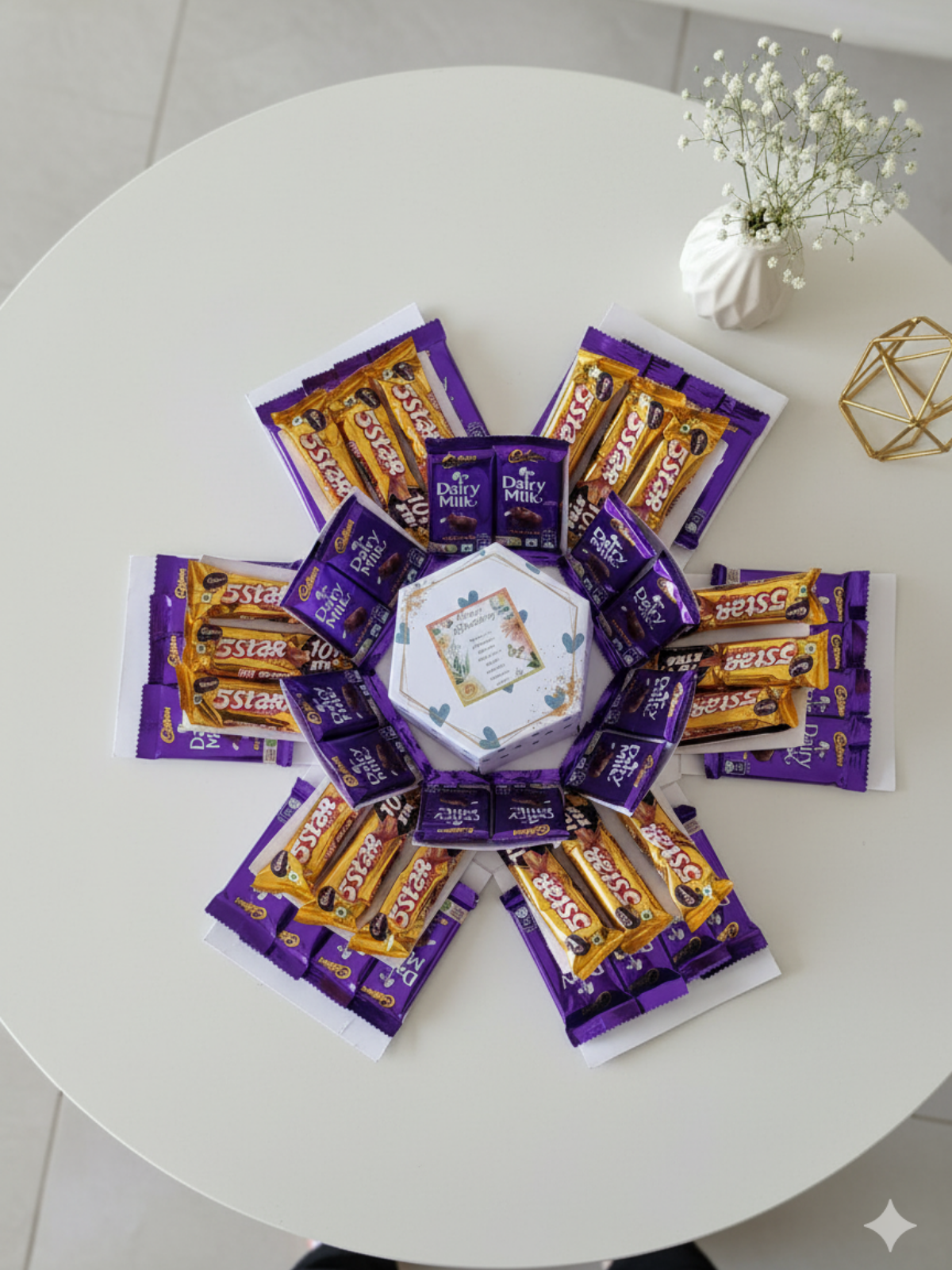 A delightful handcrafted gift designed to bring joy and warmth to your loved ones. Each item is carefully arranged and crafted with premium quality, making it perfect for birthdays, anniversaries, celebrations, or just to show your love. Every moment becomes memorable with this thoughtful gift.