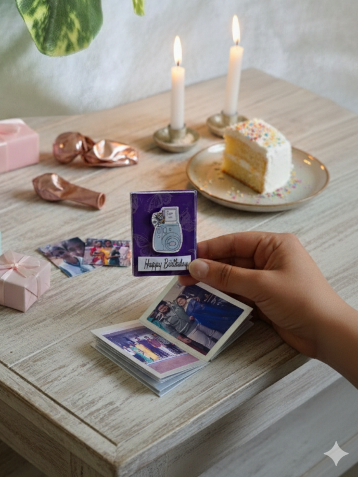 Keep your memories close with our Mini Photo Album — a compact yet beautiful keepsake to treasure your favorite moments! This adorable album holds 20 personalized photos, perfectly arranged to tell your story in a stylish and heartfelt way. Ideal for birthdays, anniversaries, travel memories, or friendship gifts, it’s a timeless piece that keeps your memories safe Small in size, big in emotions!