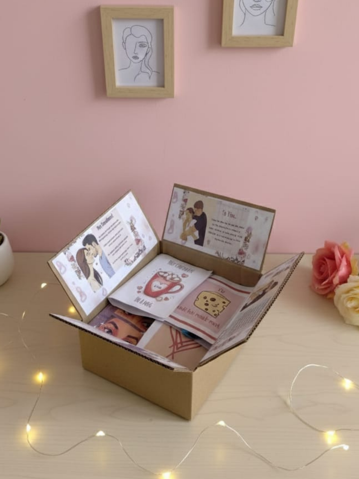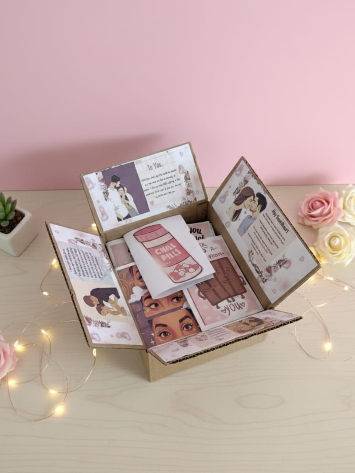 The inner flaps of the box feature beautiful illustrations and dedicated messages for your loved one, adding an extra layer of romance as they first open the gift.