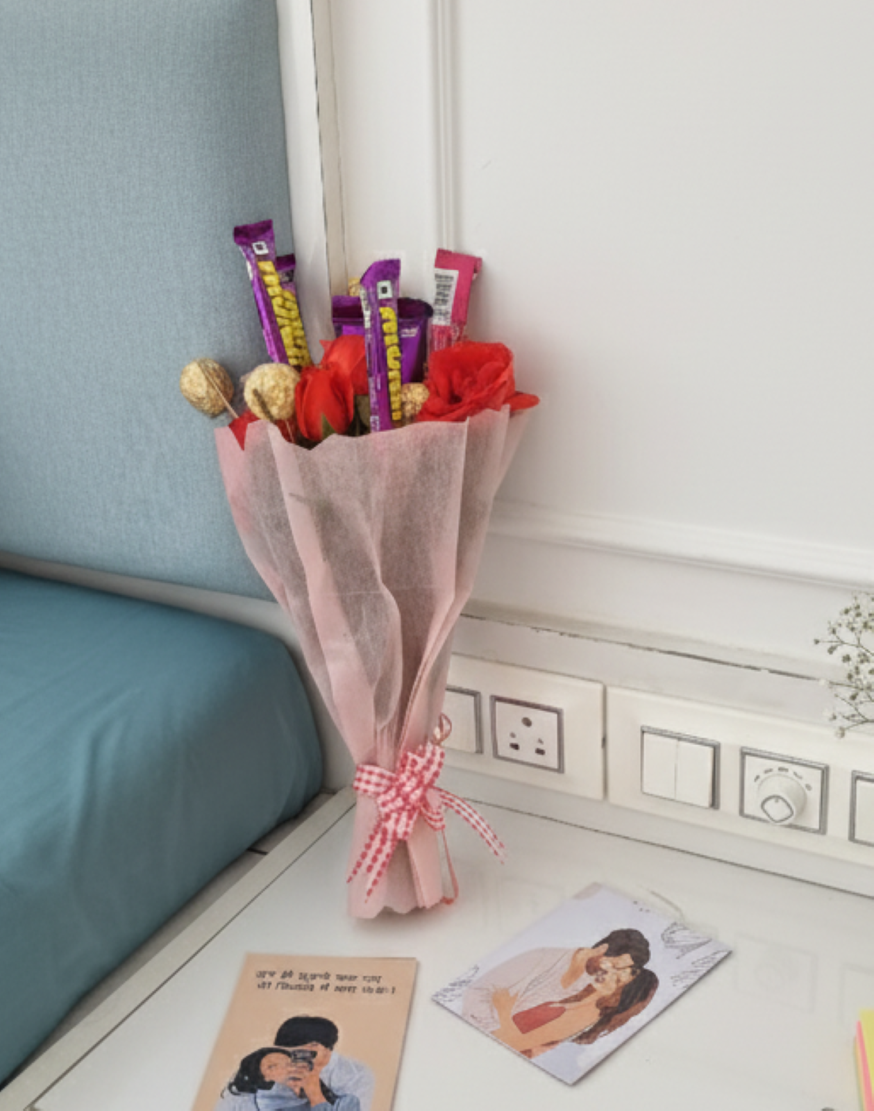 A delightful handcrafted bouquet filled with premium chocolates, designed to sweeten every occasion. Each piece is thoughtfully arranged to bring joy and warmth, making it the perfect gift for birthdays, anniversaries, celebrations, or a simple gesture of love. Indulge in a blend of taste and beauty that turns every moment into a memory worth cherishing.