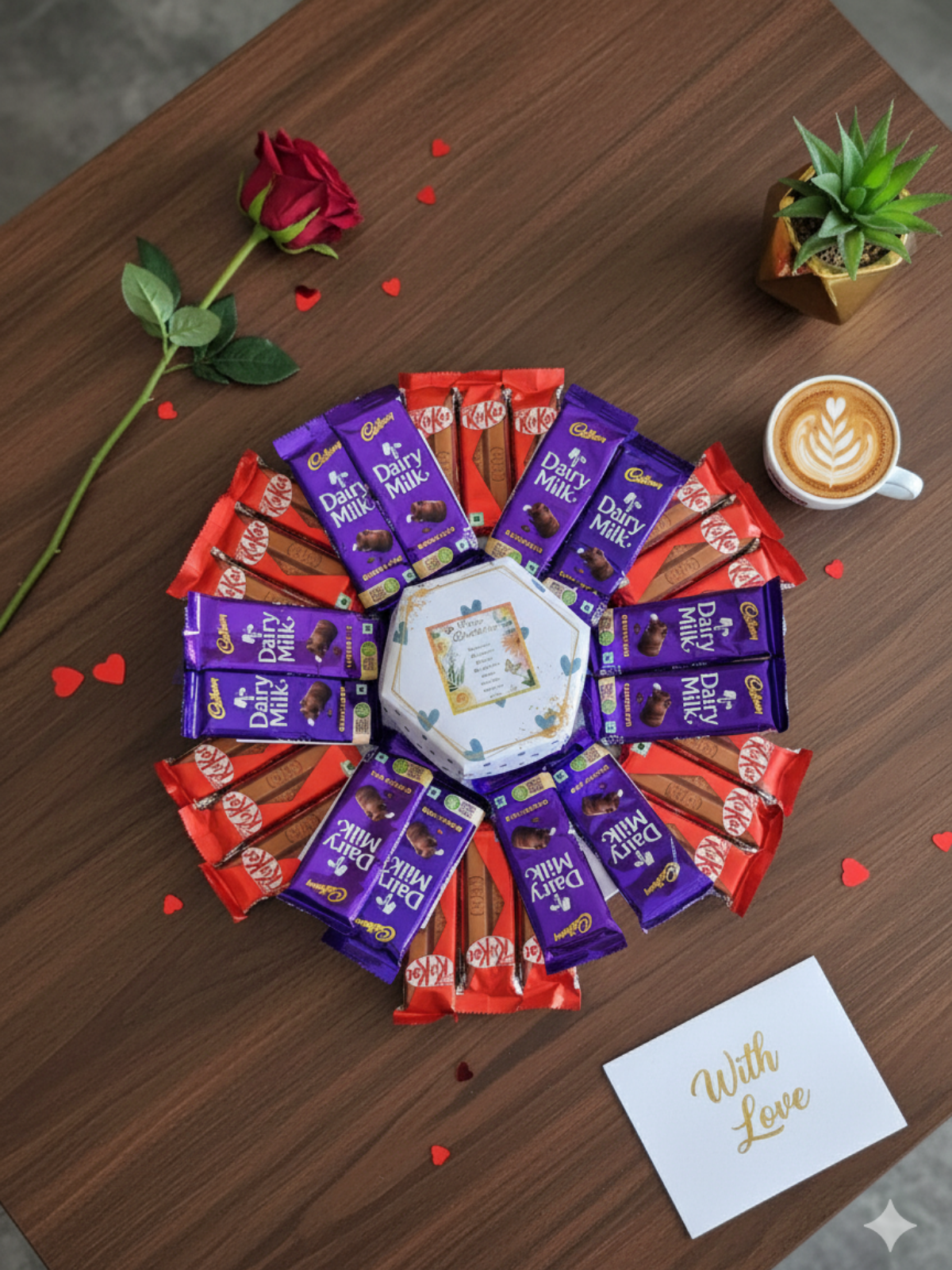 A delightful handcrafted gift designed to bring joy and warmth to your loved ones. Each item is carefully arranged and crafted with premium quality, making it perfect for birthdays, anniversaries, celebrations, or just to show your love. Every moment becomes memorable with this thoughtful gift.