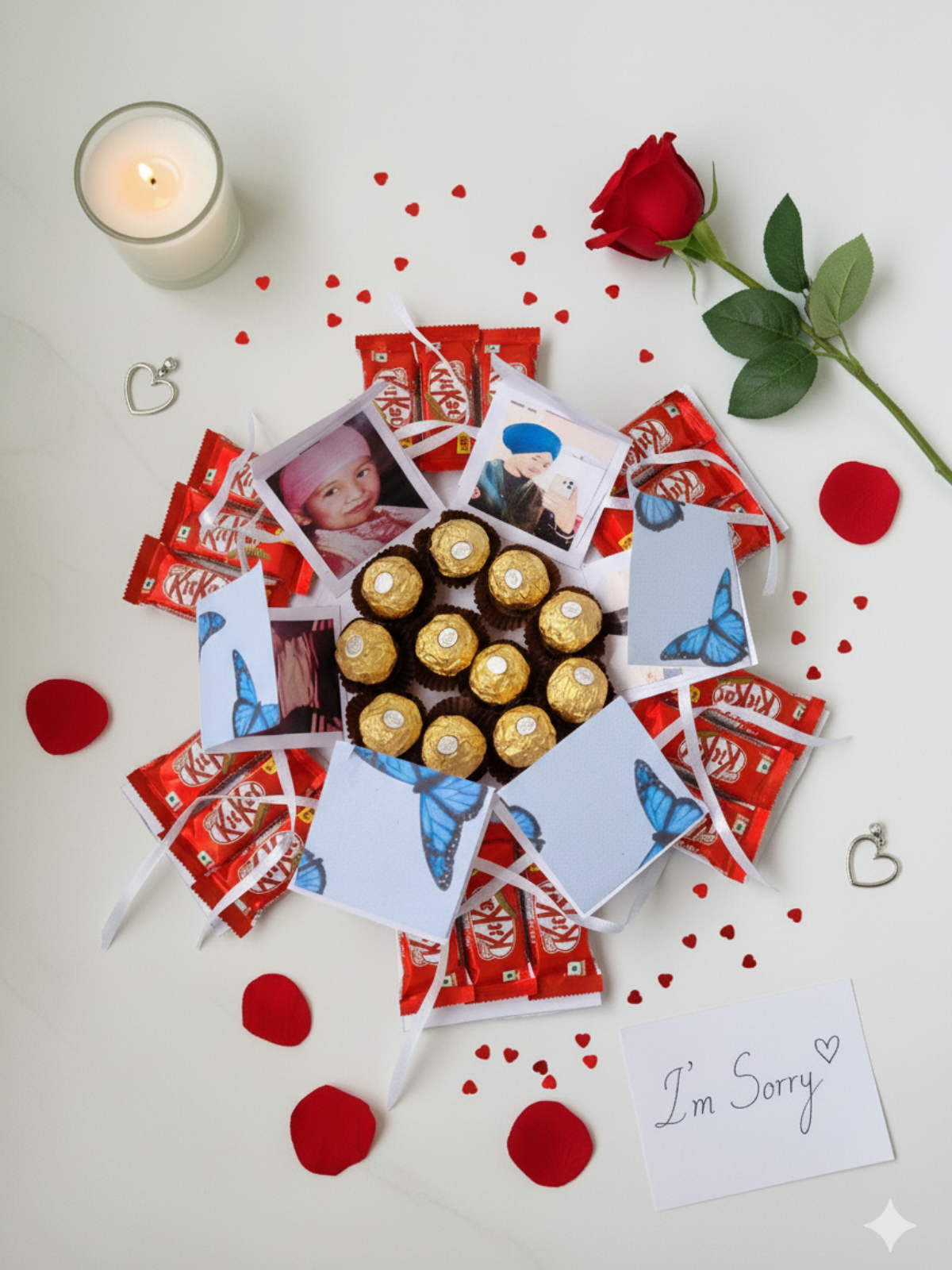 A delightful handcrafted gift designed to bring joy and warmth to your loved ones. Each item is carefully arranged and crafted with premium quality, making it perfect for birthdays, anniversaries, celebrations, or just to show your love. Every moment becomes memorable with this thoughtful gift.