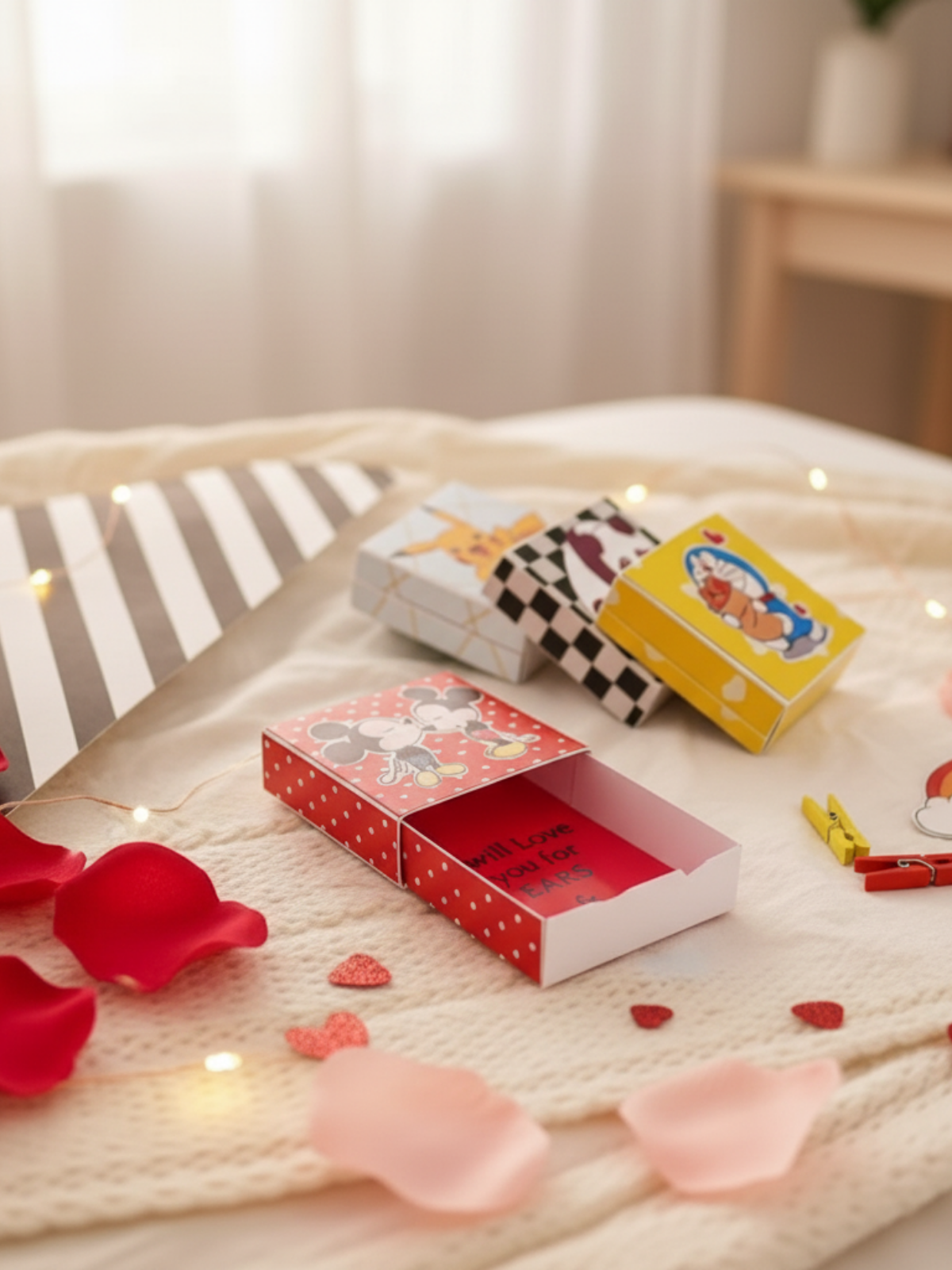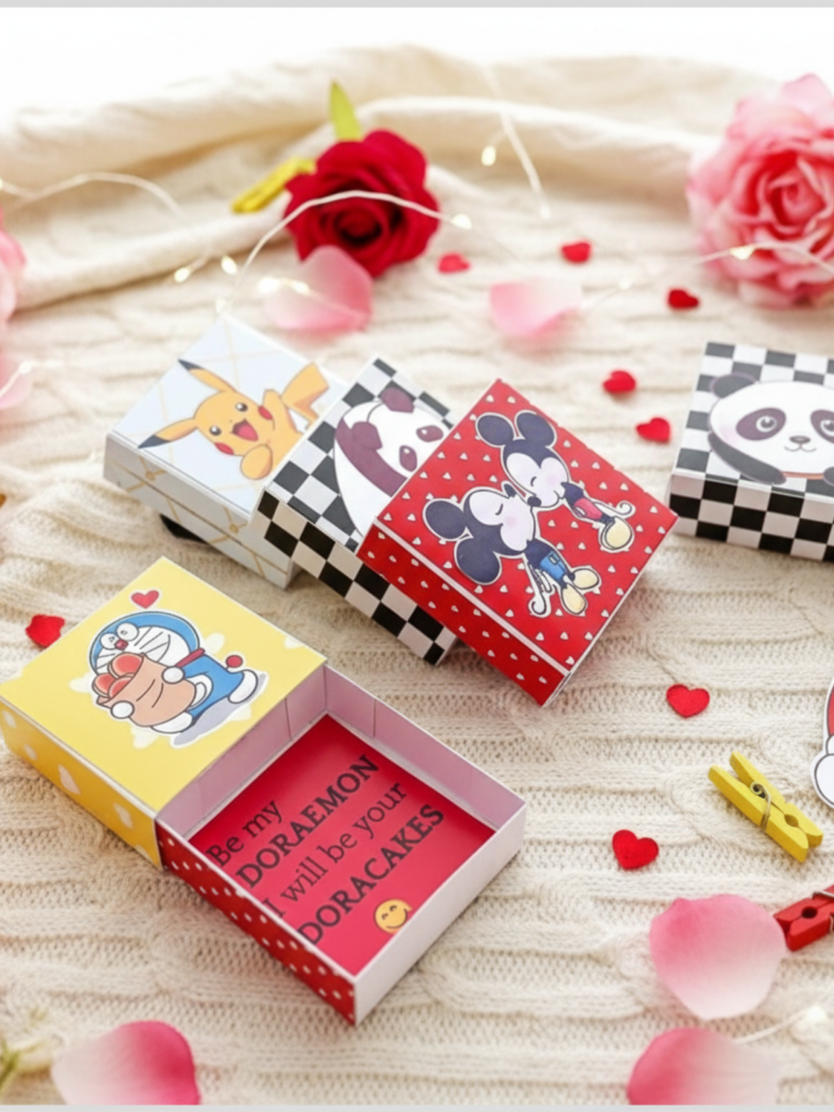 Make gifting extra special with our Mini Matchbox – Set of 4! This adorable collection includes four creatively designed mini matchboxes, each filled with cute surprises or heartfelt messages. Perfect for birthdays, anniversaries, or just to spread smiles, these tiny boxes of joy make a big impression — all for just . A unique and thoughtful way to show love in the smallest package!