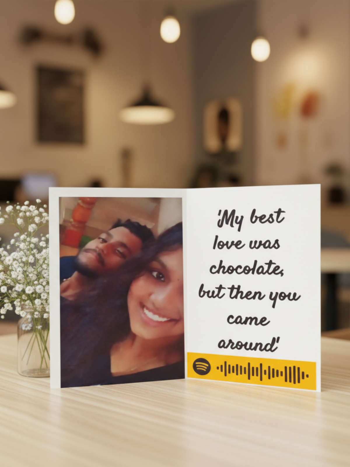 Gift your favorite memories in a modern and musical way with our Spotify Card! This creative card includes 1 personalized photo, 1 heartfelt message, and 1 song of your choice, making it a unique and thoughtful gift. Perfect for birthdays, anniversaries, or special surprises, it’s a perfect blend of music, memories, and emotions.
