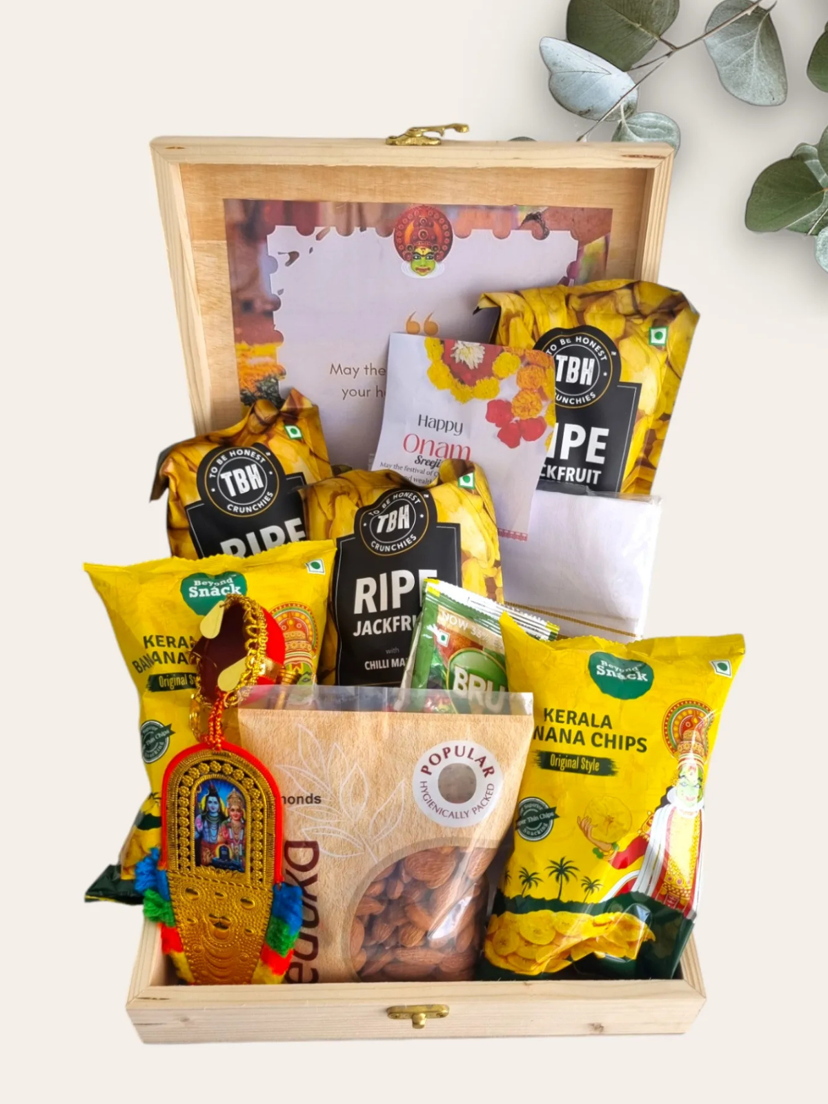 A beautifully curated hamper inspired by the rich culture and authentic tastes of Kerala. Perfect for gifting loved ones who appreciate traditional flavors, warmth, and elegance — making every moment of celebration special and memorable.