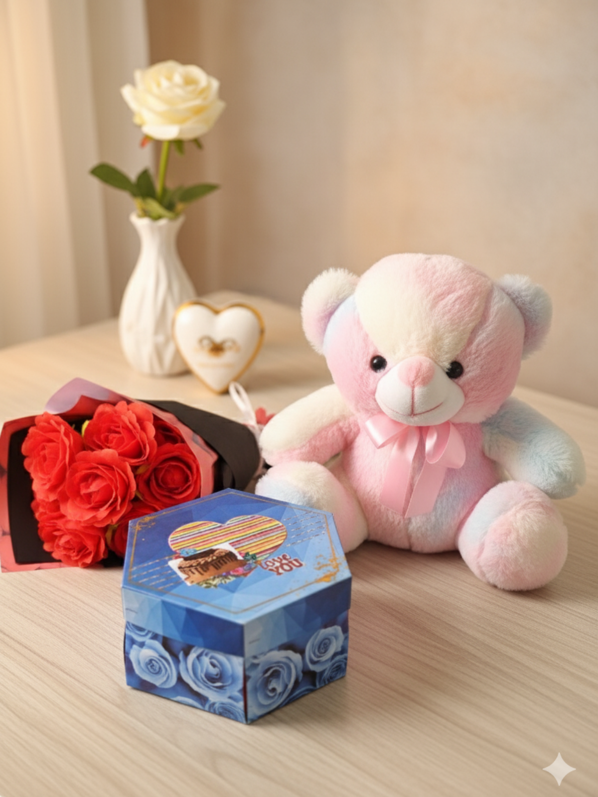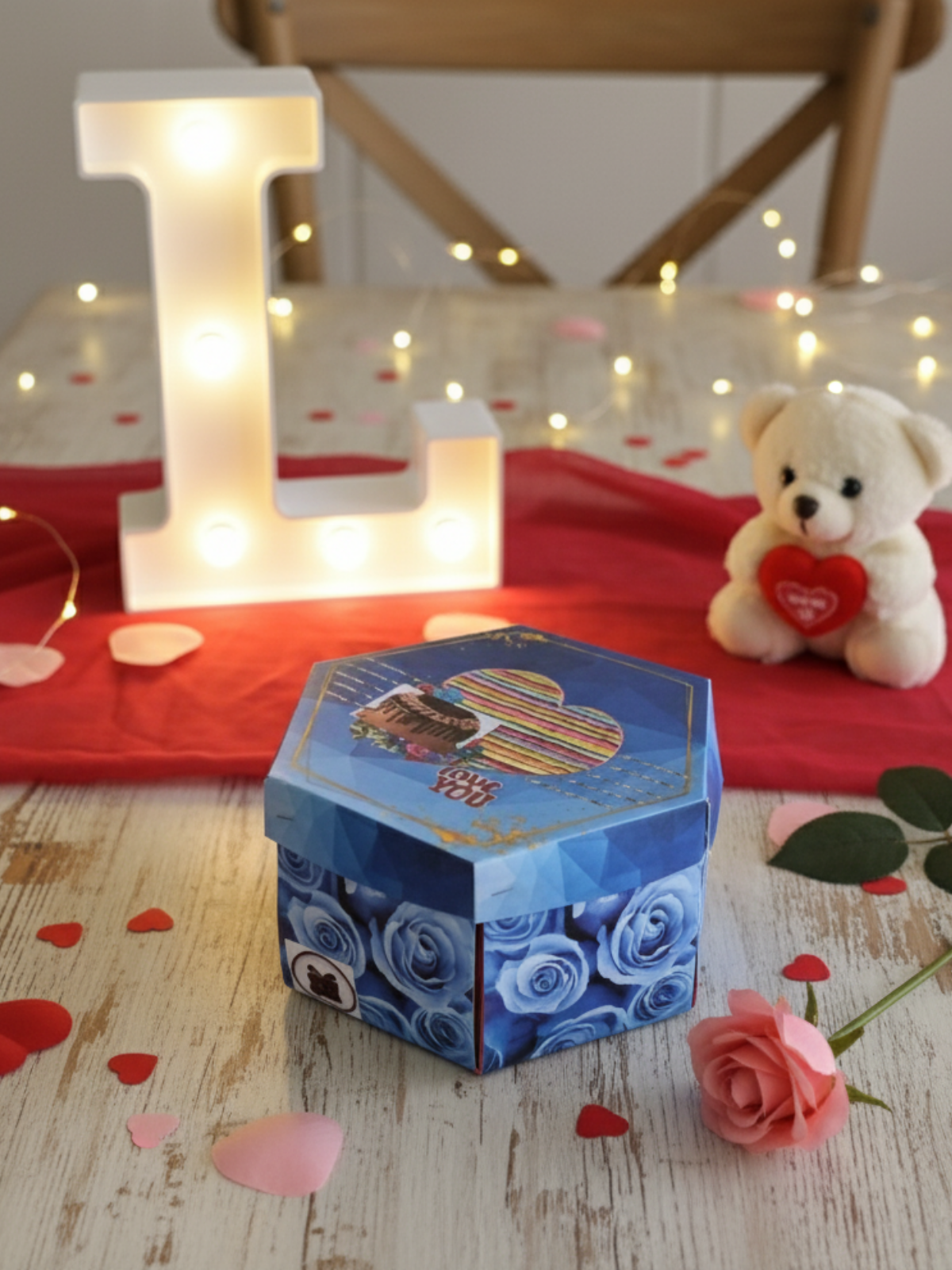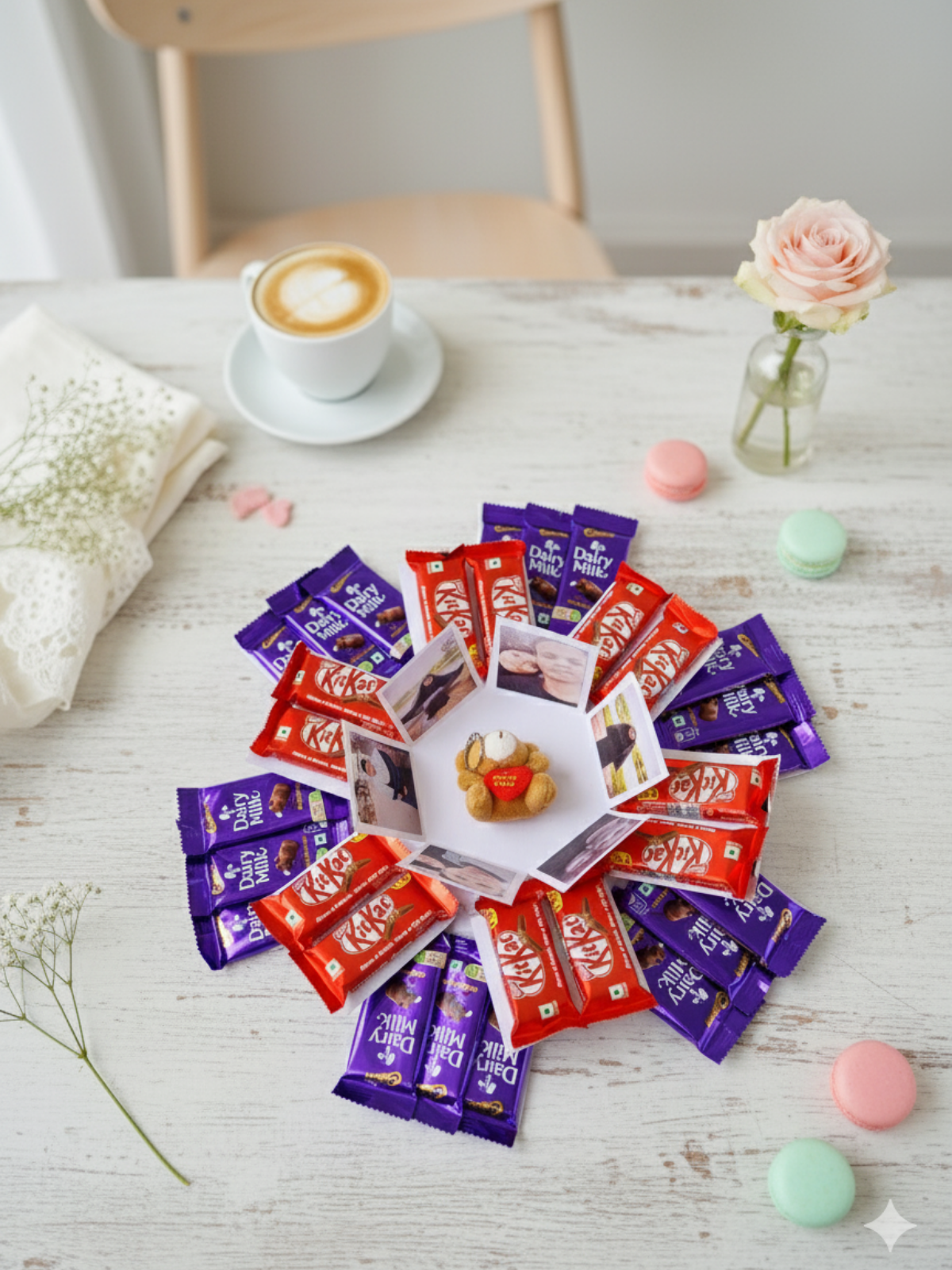 Express your love in the sweetest way with our Love Hamper — a perfect mix of romance, memories, and indulgence. Filled with your cherished photos ,rose bouquet and a delicious collection of premium chocolates, this hamper is ideal for anniversaries, Valentine’s Day, or just to make your partner feel special. A heartfelt gift that speaks the language of love!