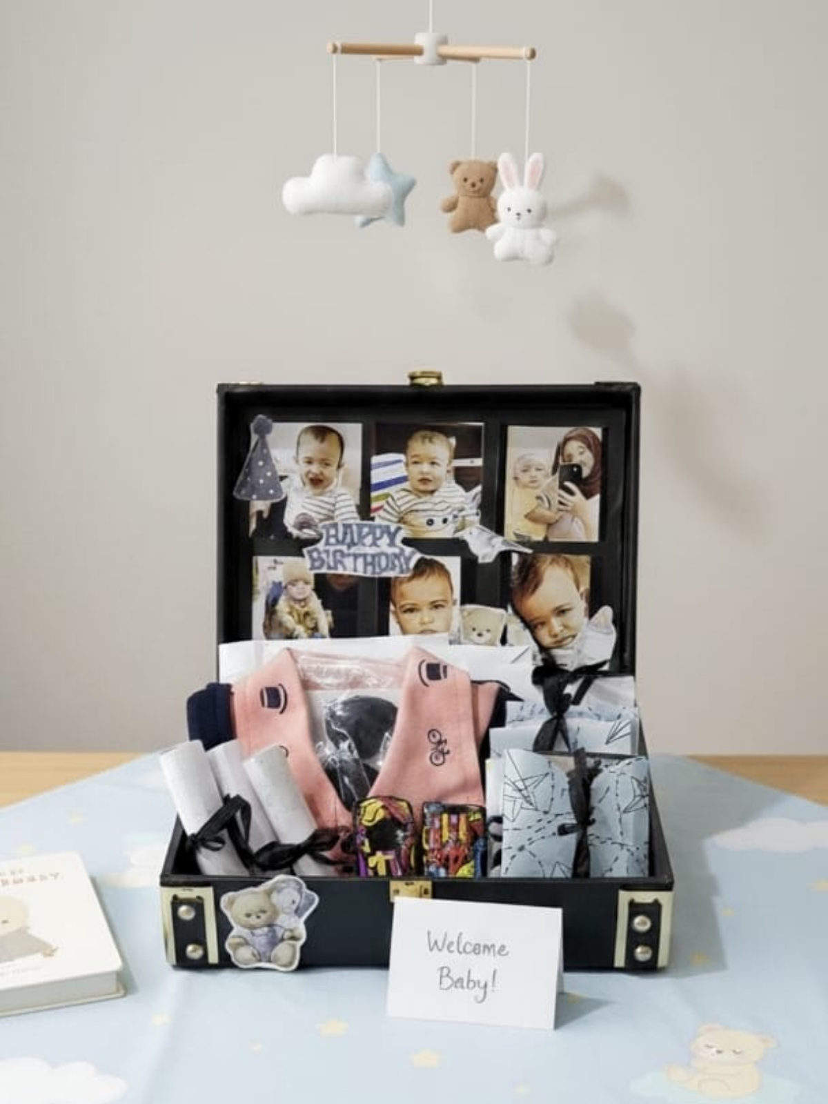 This beautifully curated hamper is the perfect way to "Welcome Baby" or celebrate a First Birthday. It's thoughtfully assembled to create a treasured keepsake and includes both practical items and personalized mementos.
