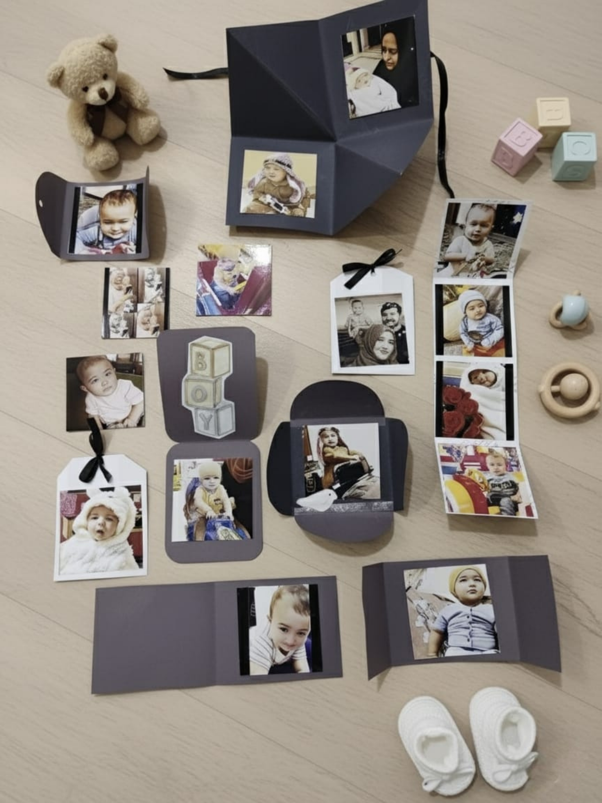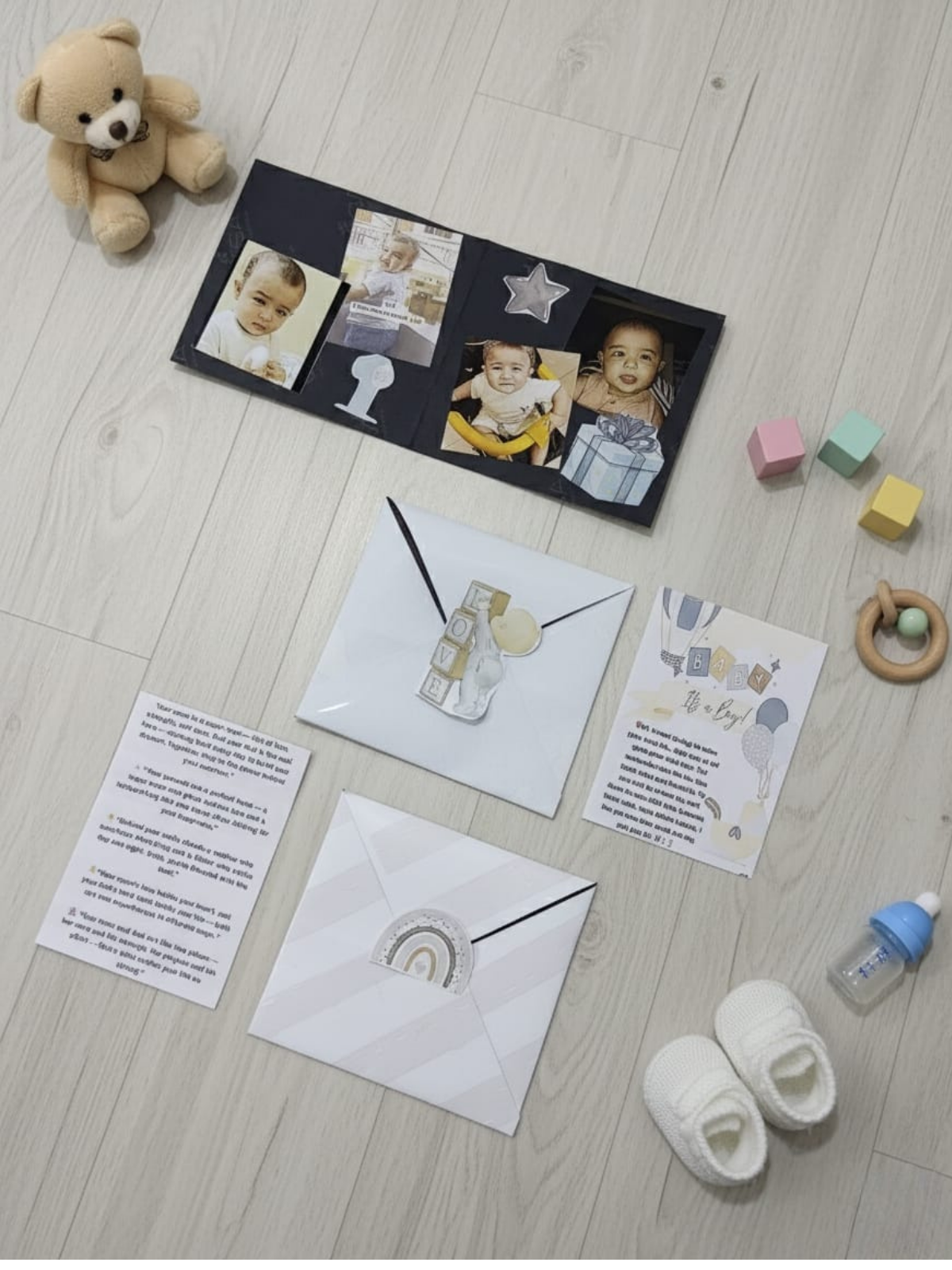 Hamper includes- a collection of 10 cute photo cards,2 letters, quotes, message tags, Baby tags,2 car toys.
