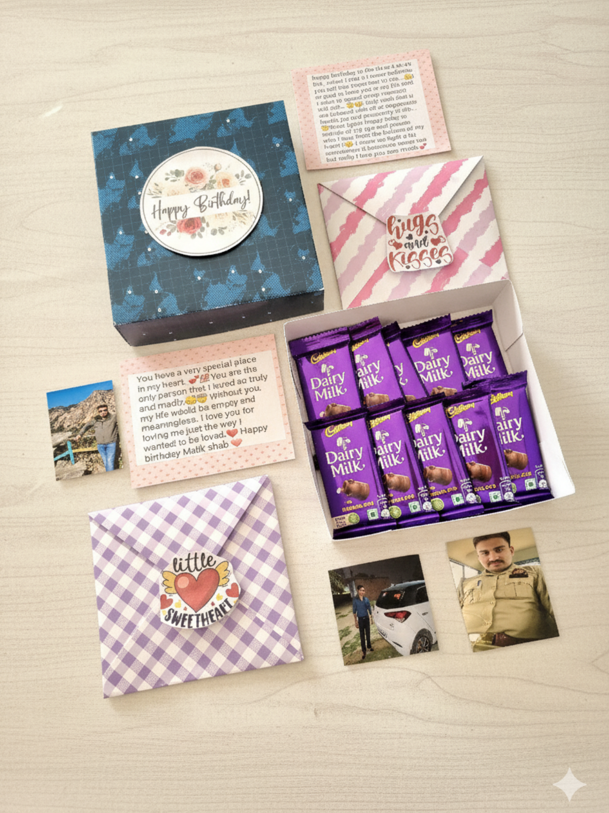 Delight in the little joys with our Tiny Treats Hamper! A carefully curated gift featuring select photos, heartfelt messages, and a generous assortment of chocolates. Perfect for small celebrations, thoughtful gestures, or simply to bring a smile to someone special.