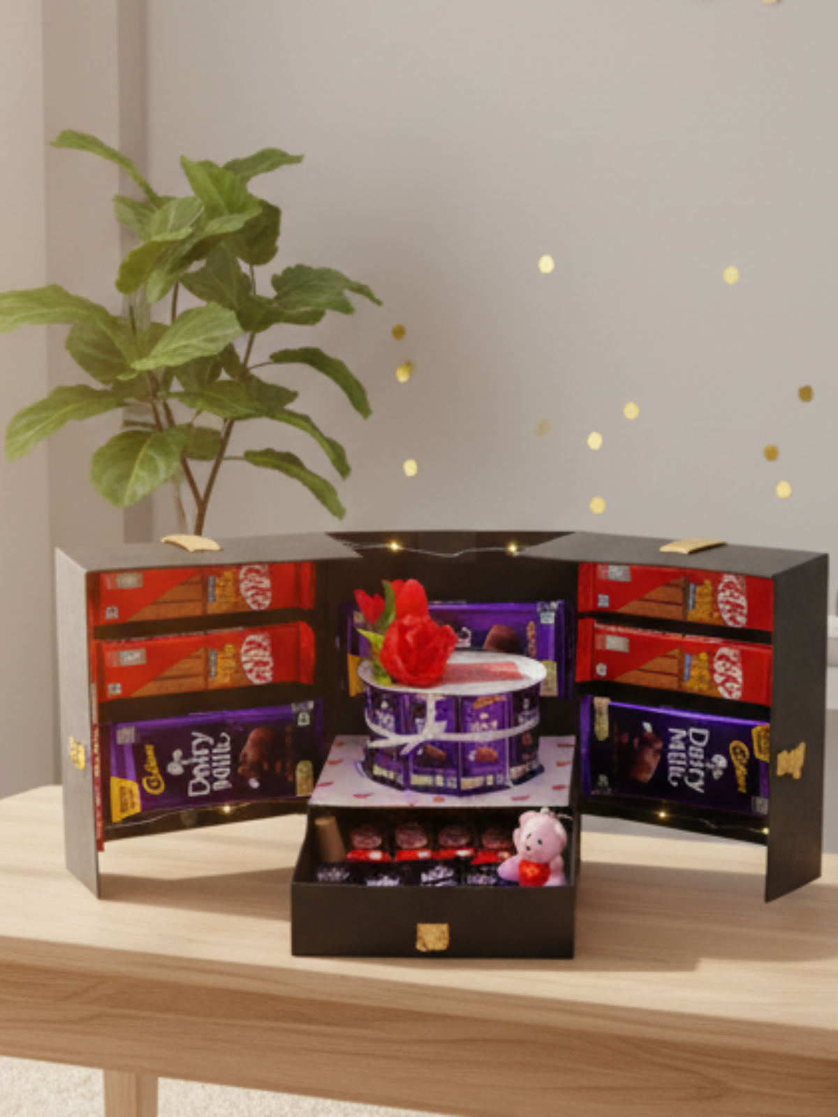 A delightful gift hamper designed to celebrate every special moment. Each box is filled with sweet indulgence and thoughtful surprises — from delicious chocolates to heartfelt keepsakes. Perfect for birthdays, anniversaries, proposals, or festive celebrations, these hampers are curated to express love, joy, and gratitude. Crafted with attention to detail, it’s the perfect way to make your loved ones feel truly special.
