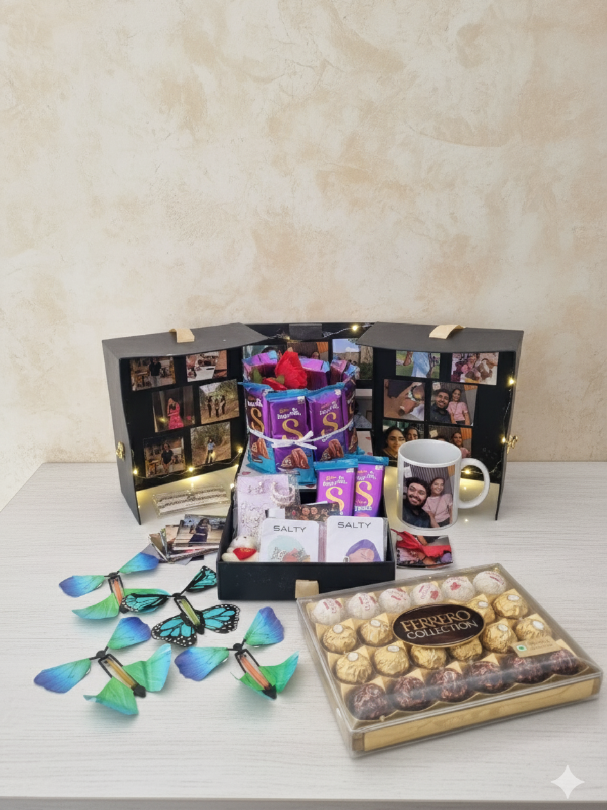 A delightful gift hamper designed to celebrate every special moment. Each box is filled with sweet indulgence and thoughtful surprises — from delicious chocolates to heartfelt keepsakes. Perfect for birthdays, anniversaries, proposals, or festive celebrations, these hampers are curated to express love, joy, and gratitude. Crafted with attention to detail, it’s the perfect way to make your loved ones feel truly special.