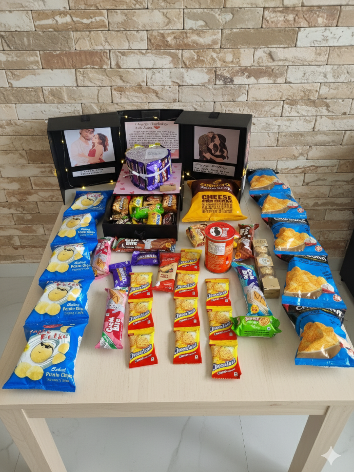 A delightful gift hamper designed to celebrate every special moment. Each box is filled with sweet indulgence and thoughtful surprises — from delicious chocolates to heartfelt keepsakes. Perfect for birthdays, anniversaries, proposals, or festive celebrations, these hampers are curated to express love, joy, and gratitude. Crafted with attention to detail, it’s the perfect way to make your loved ones feel truly special.