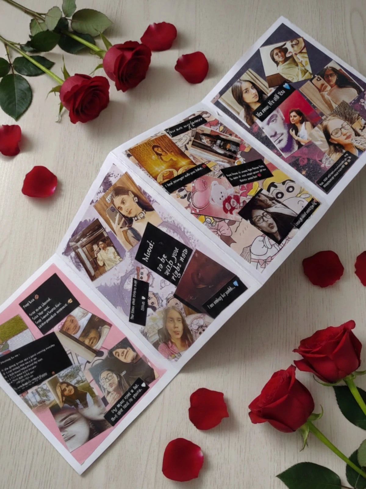 This is a truly unique and heartfelt way to share your journey! This beautiful, foldable strip unfolds like a film reel, displaying a stunning timeline of your personalized photos and messages against an elegant black background. It's the perfect, intimate, and thoughtful gift to celebrate your anniversary or love story.